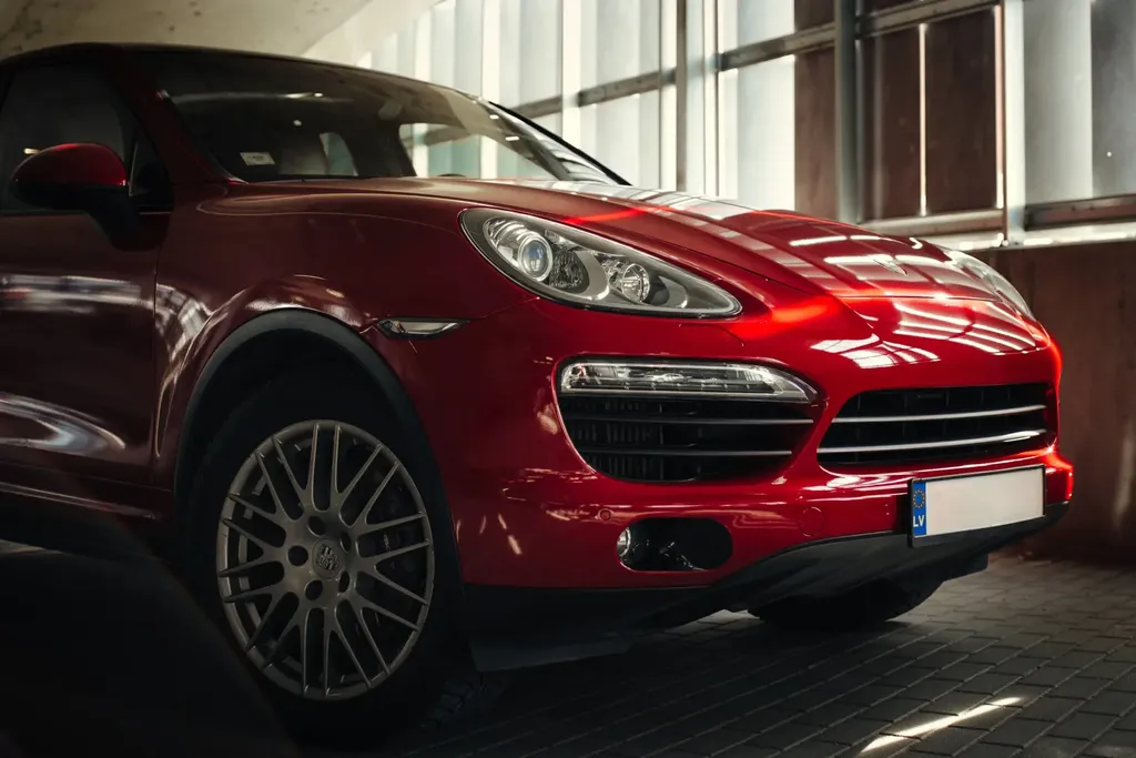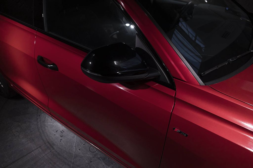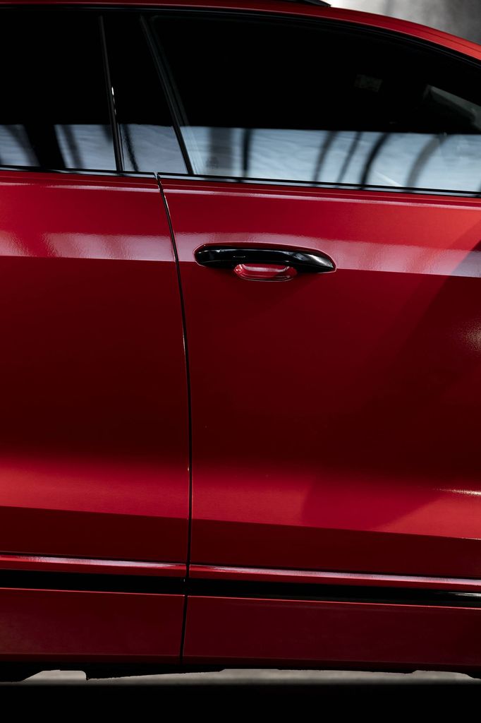 Deep blood red colour, as if a vampire has been at work. The very fine metallic only emerges when light hits the contours of the vehicle.