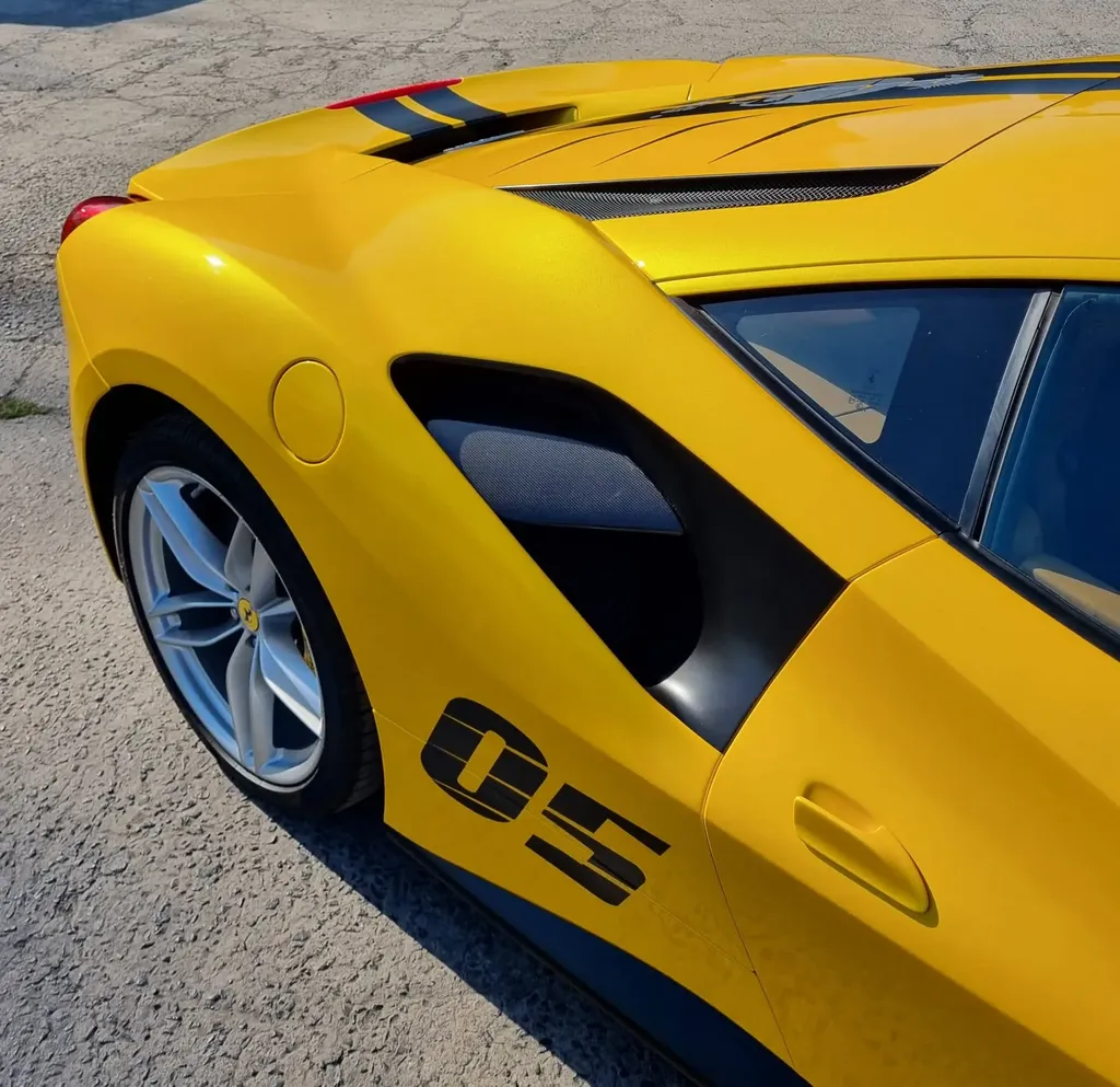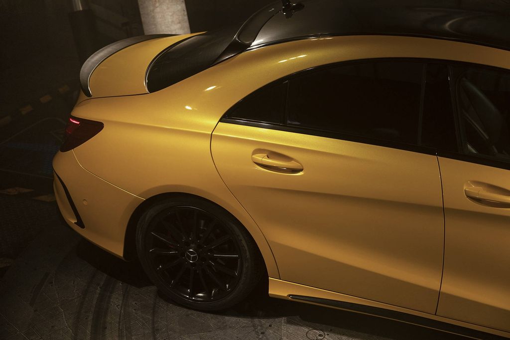 The most beautiful high gloss yellow metallic on the market. This colour is made up of three layers and is completely opaque; the colour stays the same on both dark and light surfaces. The second layer contains small metallic particles in red, green and yellow. The top cast layer covers everything and ensures that the colour doesn’t change when the film is stretched.
