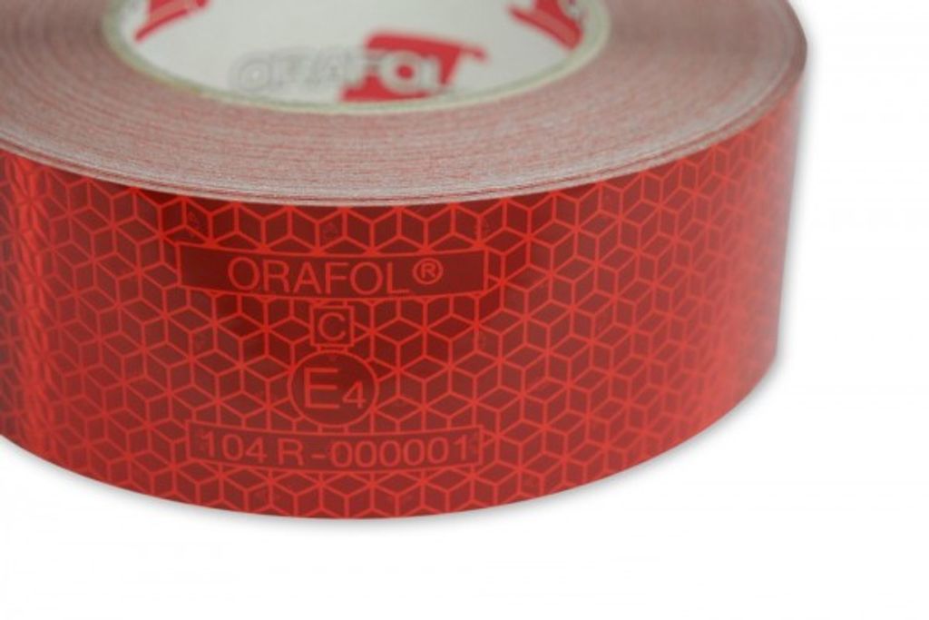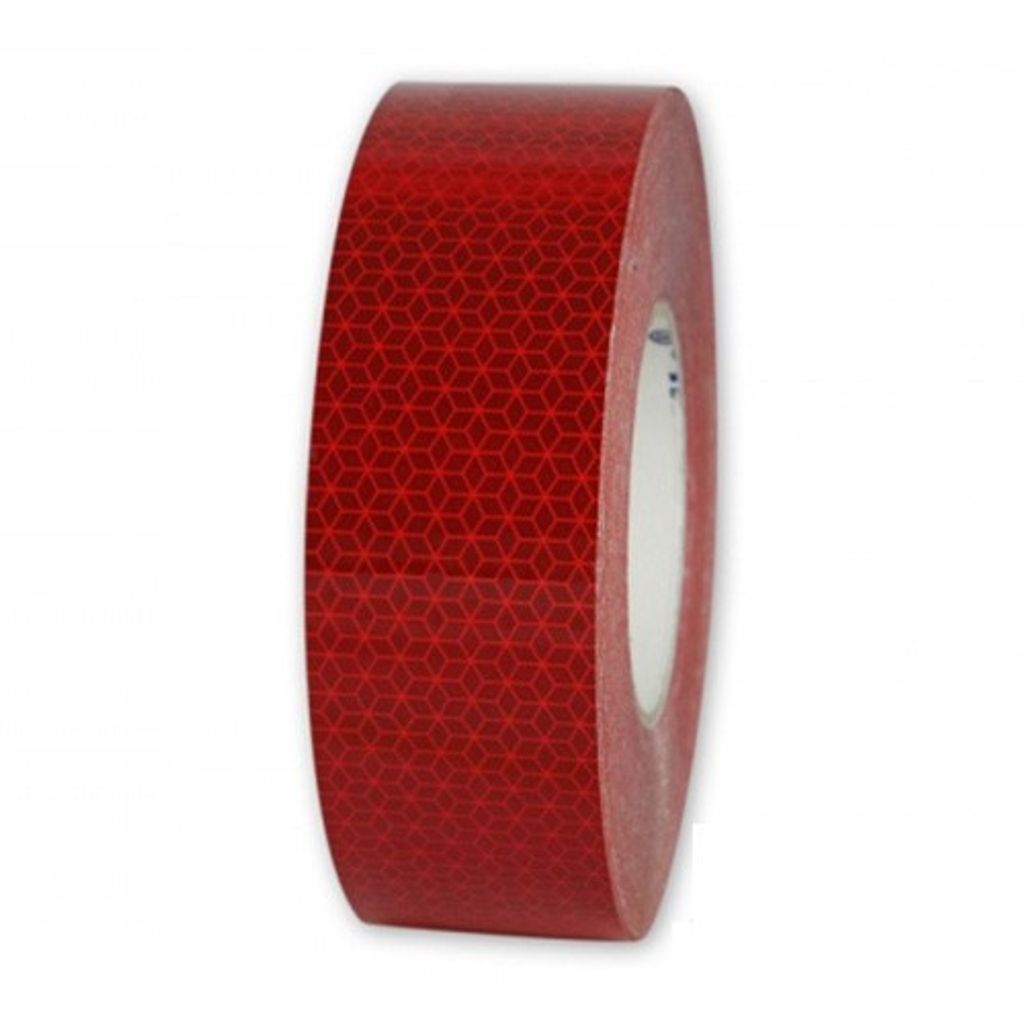 Röd reflextejp för säkerhetsmarkering av fordon. Monteras på hårda ytor. För applicering på t.ex lastbilar och släpvagnar.