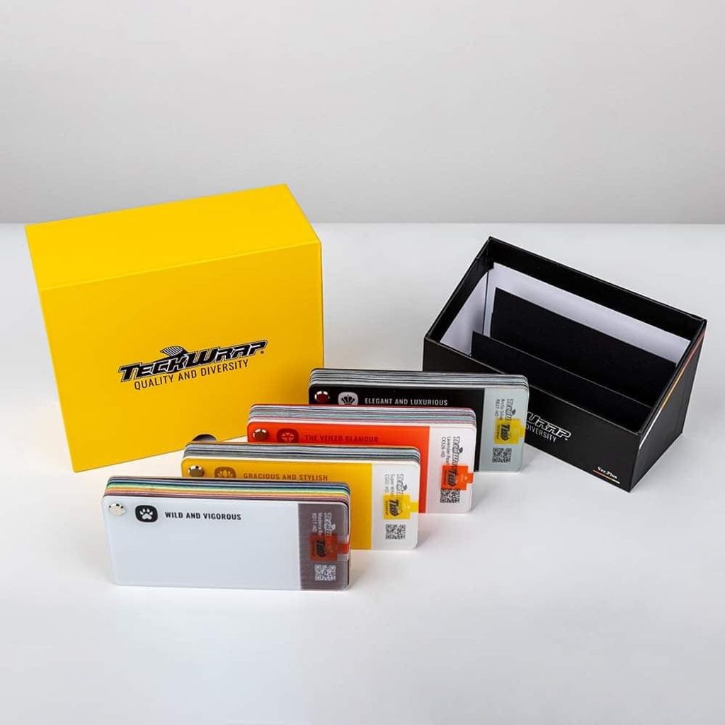 This sample book is invaluable for making informed choices about vehicle wraps and protective films, offering a tangible experience of TeckWrap’s extensive product range.